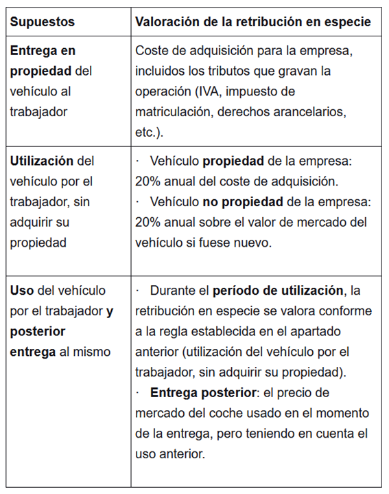 La empresa titular del vehículo debe abonar todos los gastos inherentes a la puesta en condiciones de uso del vehículo: gastos de mantenimiento, seguro, impuesto de circulación… Estos gastos se incluyen en la valoración de la retribución en especie del empleado, no constituyen retribución adicional. En cuanto a los gastos de, por ejemplo, peajes o combustible, debe distinguirse dos supuestos: a) Los gastos realizados durante la jornada laboral corren a cargo de la empresa y no tienen la consideración de retribución; b) Los gastos realizados fuera de la jornada laboral, esto es, cuando se utiliza el vehículo con fines particulares, en principio, corren a cargo del trabajador. Si son abonados por la empresa, tendrán la consideración de retribución en especie.